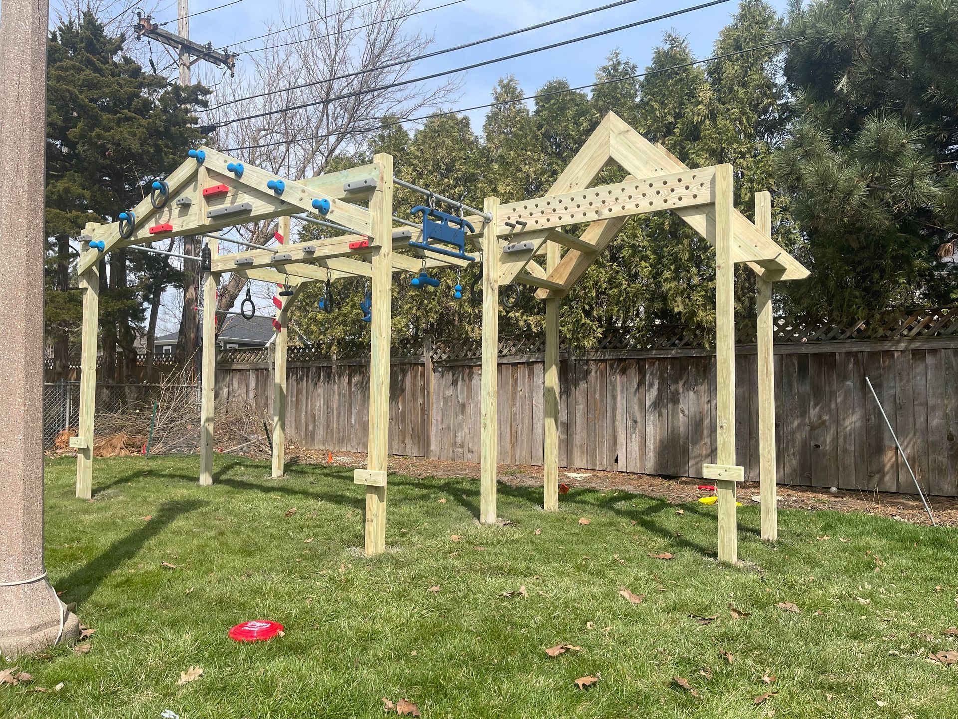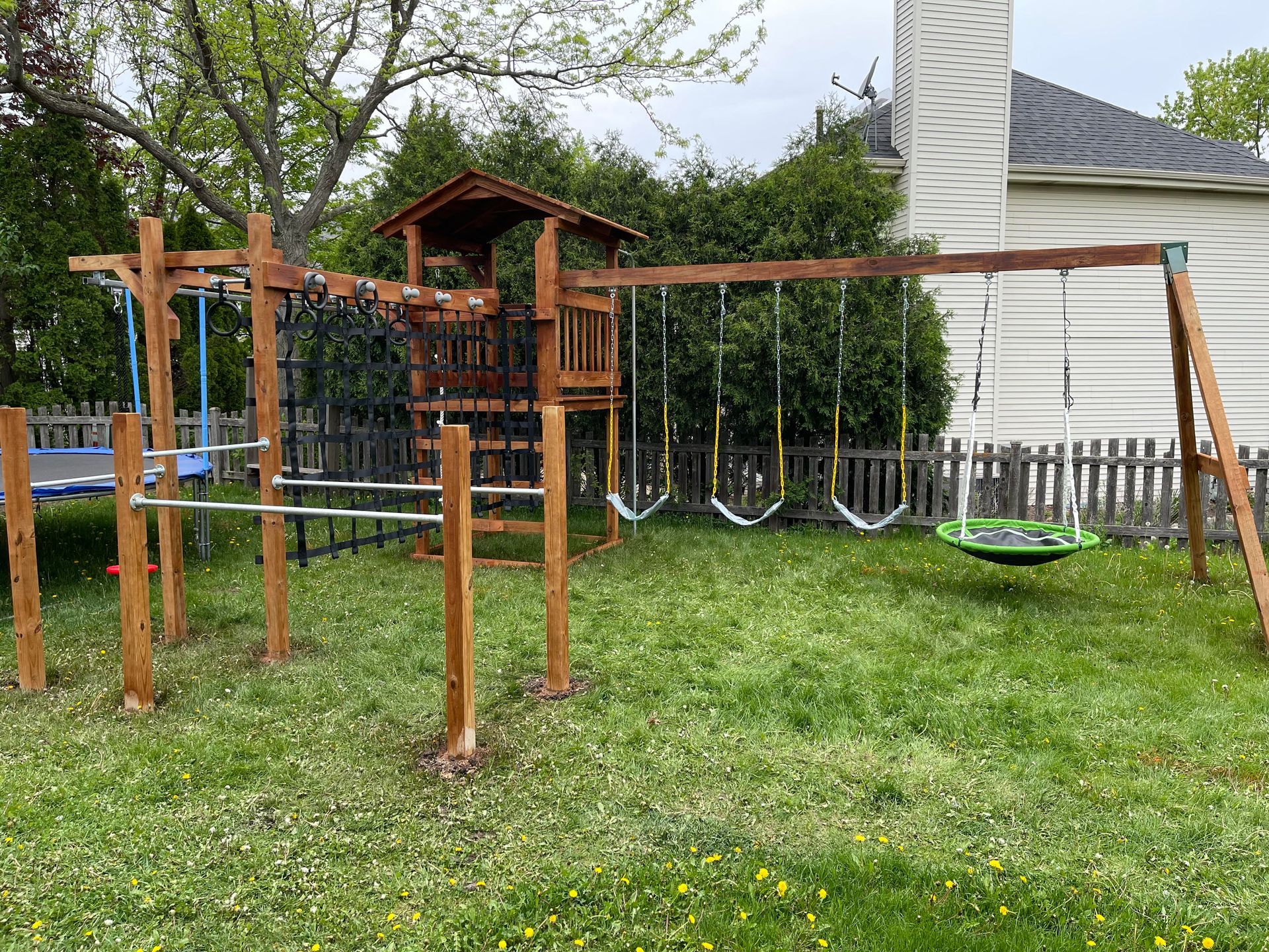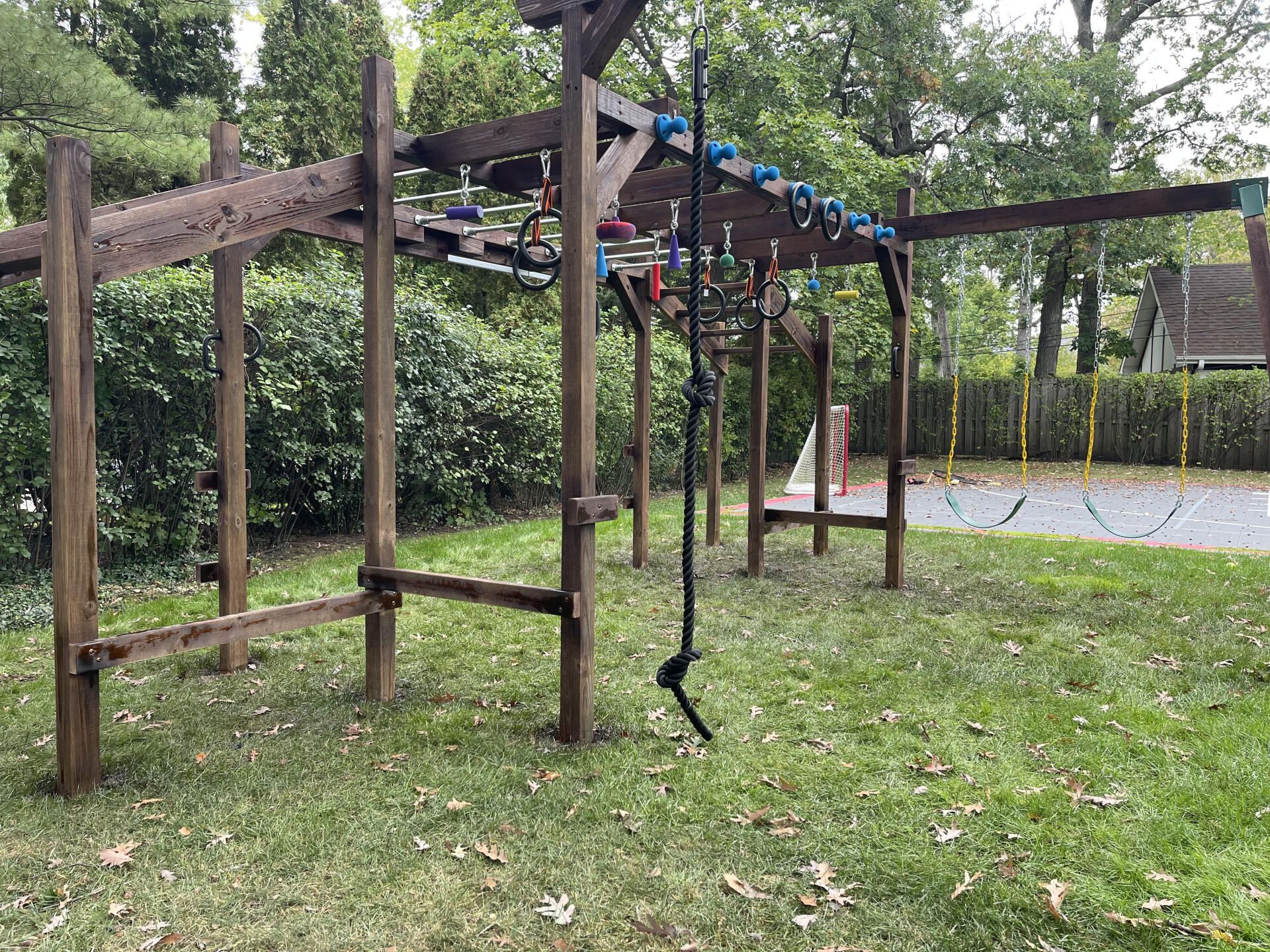 Looking for a fun activity to do outdoors? At J.B. Builders we can build you an outdoor gym to fit exactly what you are looking for. All gyms that we build are fully customizable allowing you to add whatever features you would like such as a Lache bars, Devil Steps, Ninja Jungle, warped wall, Salmon ladder, peg boards, cliffhangers, ring toss, monkey bars, Platforms, ziplines, slides or a swing set. We as well can combine ninja gyms and playsets for families with multi age kids. If you have an old playset we can inspect if it needs replacement or we can add on to the existing structure. If you are having trouble knowing which features you want to have, no worries. At J.B. Builders, we consider ourselves experts and we will be able to help you make these tough decisions.