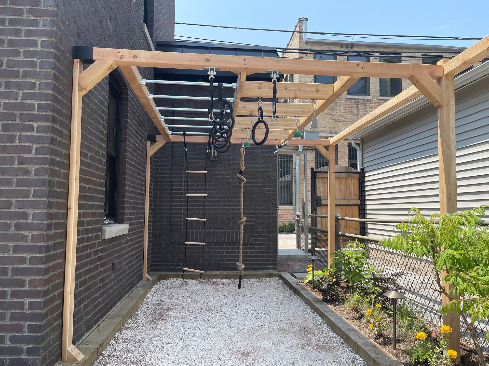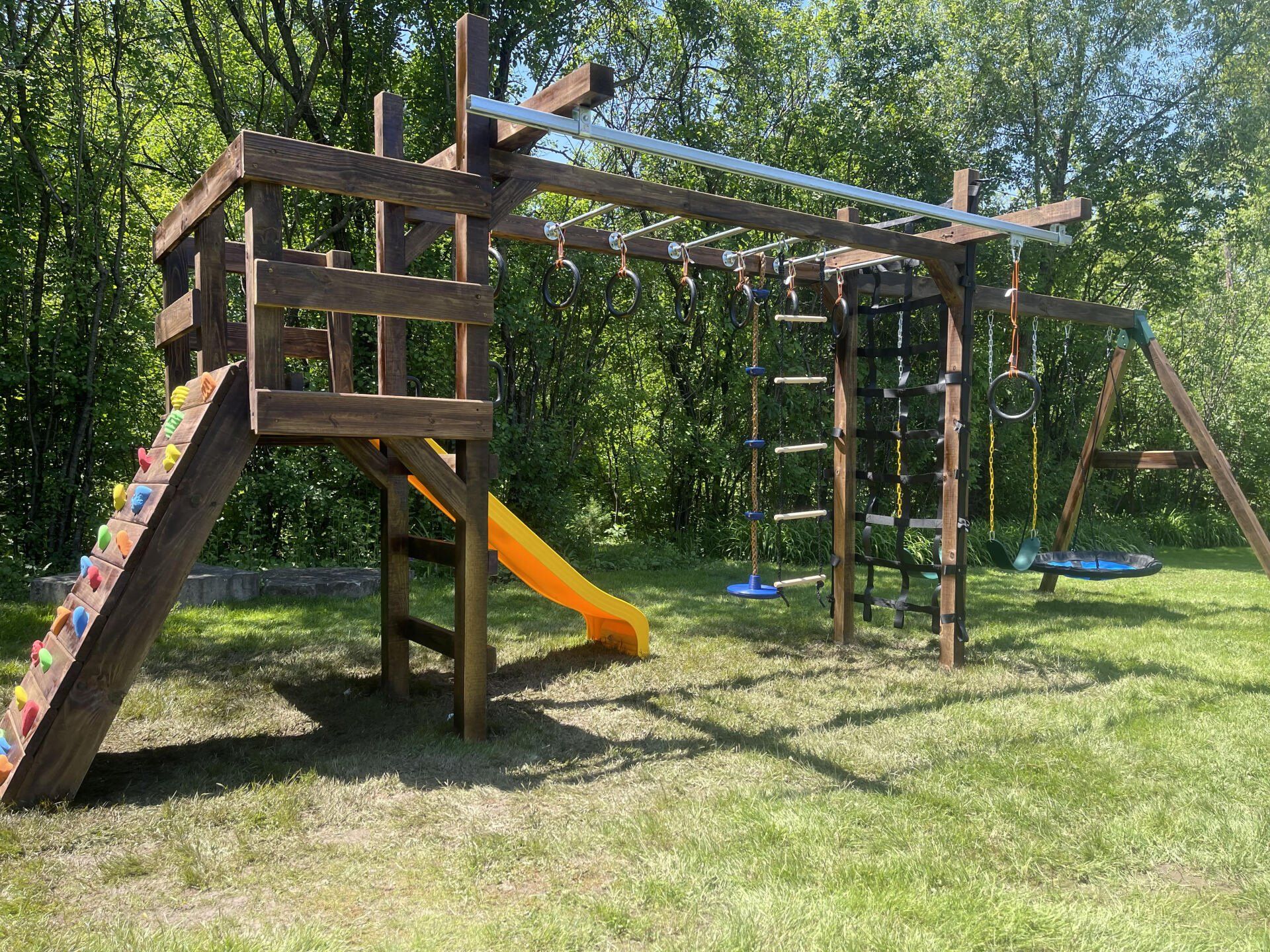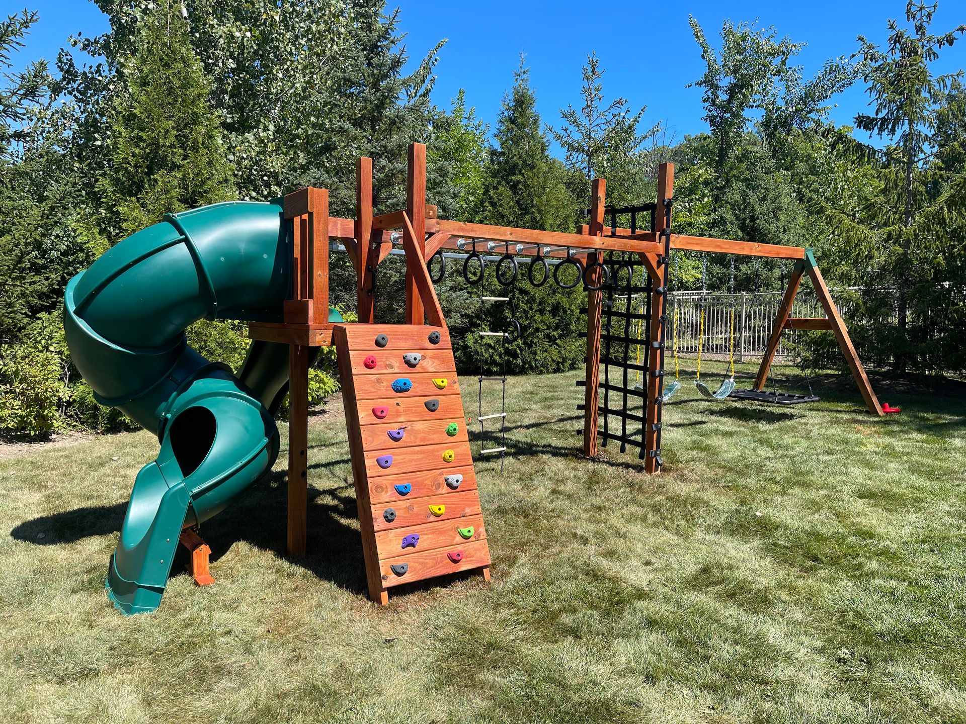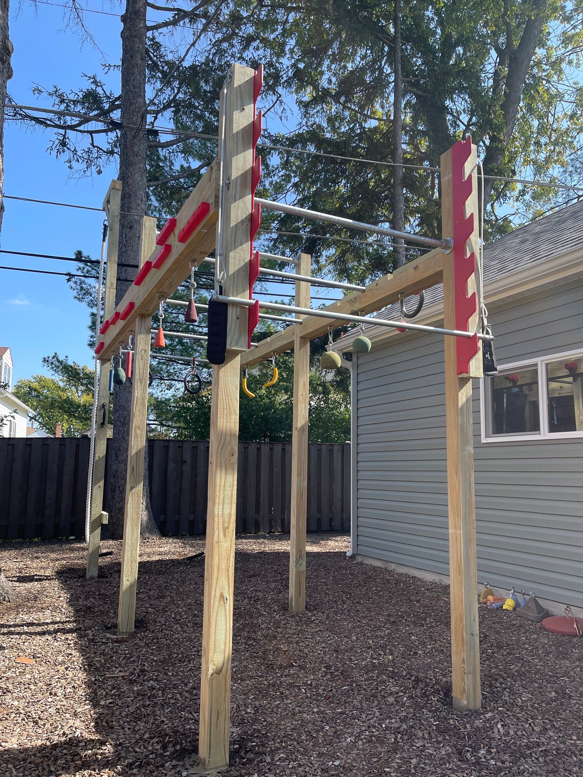 Looking for a fun activity to do outdoors? At J.B. Builders we can build you an outdoor gym to fit exactly what you are looking for. All gyms that we build are fully customizable allowing you to add whatever features you would like such as a Lache bars, Devil Steps, Ninja Jungle, warped wall, Salmon ladder, peg boards, cliffhangers, ring toss, monkey bars, Platforms, ziplines, slides or a swing set. We as well can combine ninja gyms and playsets for families with multi age kids. If you have an old playset we can inspect if it needs replacement or we can add on to the existing structure. If you are having trouble knowing which features you want to have, no worries. At J.B. Builders, we consider ourselves experts and we will be able to help you make these tough decisions.